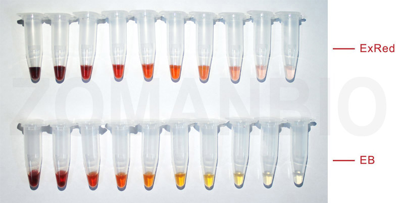 ExRed和EB的稀釋效果對比圖(以2×稀釋效果為例)如下:
