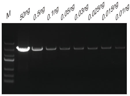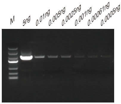 10K質(zhì)粒DNA可擴增的濃度極限為:0.0005ng |