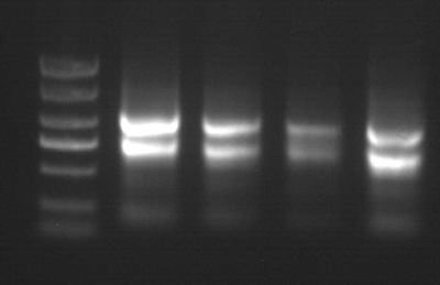 取50mg新鮮樣品,使用ZP434提取總RNA,洗脫體積100μL。 1%瓊脂糖凝膠電泳, 上樣量為2μL,5v/cm電泳15min。 注:以上樣品提取均未加β-巰基乙醇 |