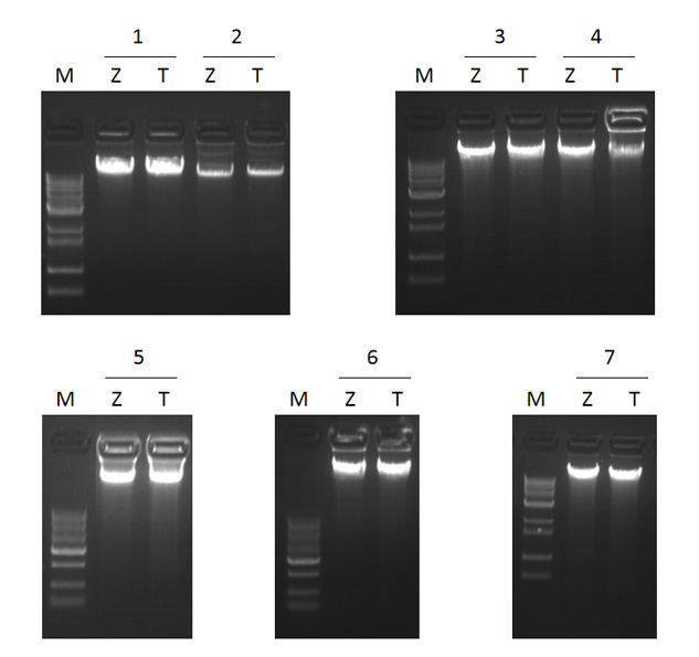 用ZP333提取各種植物樣品的電泳結(jié)果,并與T公司同類產(chǎn)品比較。