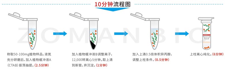 本試劑盒采用可以特異性結合DNA的離心吸附柱和獨特的緩沖液系統(tǒng),用于提取植物細胞中的基因組DNA。離心吸附柱中采用的硅基質材料為本公司特有新型材料,高效、專一吸附DNA,可最大限度去除植物細胞中雜質蛋白及其他有機化合物。提取的基因組DNA片段大,純度高,質量穩(wěn)定可靠。