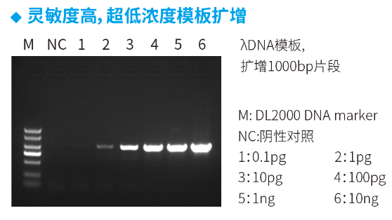 ★ 極高靈敏:超低模板量也能良好的擴增。