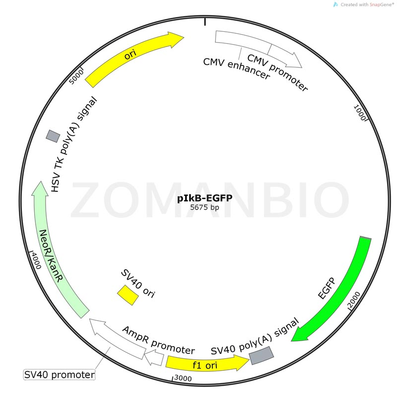 pIkB-EGFP(NM_020529.2)是一個人源基因哺乳細胞過表達質(zhì)粒。質(zhì)粒只保證關(guān)鍵序列正確,不保證表達效果。