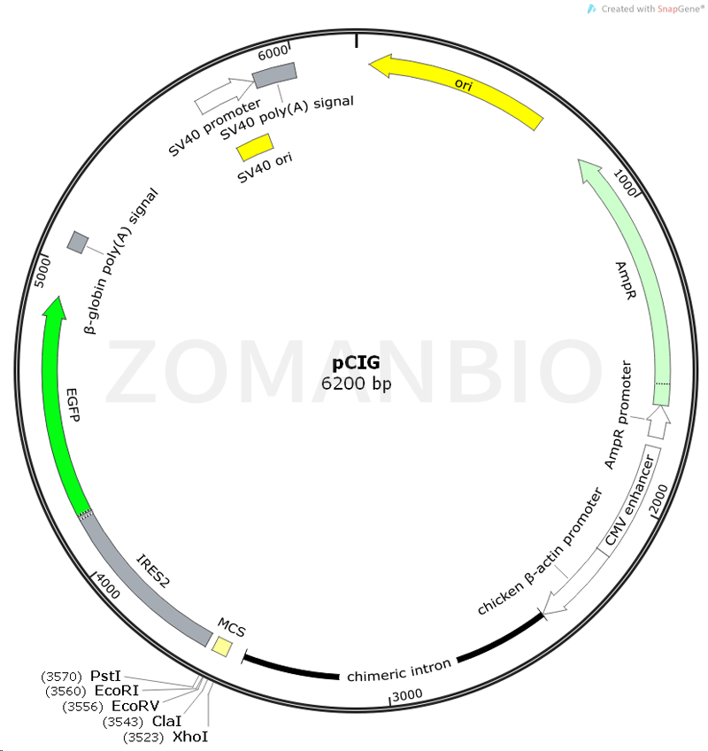 pCIG質(zhì)粒是一個(gè)哺乳細(xì)胞過表達(dá)載體,CAG啟動(dòng)子驅(qū)動(dòng)目的基因的表達(dá)。 質(zhì)粒只保證關(guān)鍵序列正確,不保證表達(dá)效果。