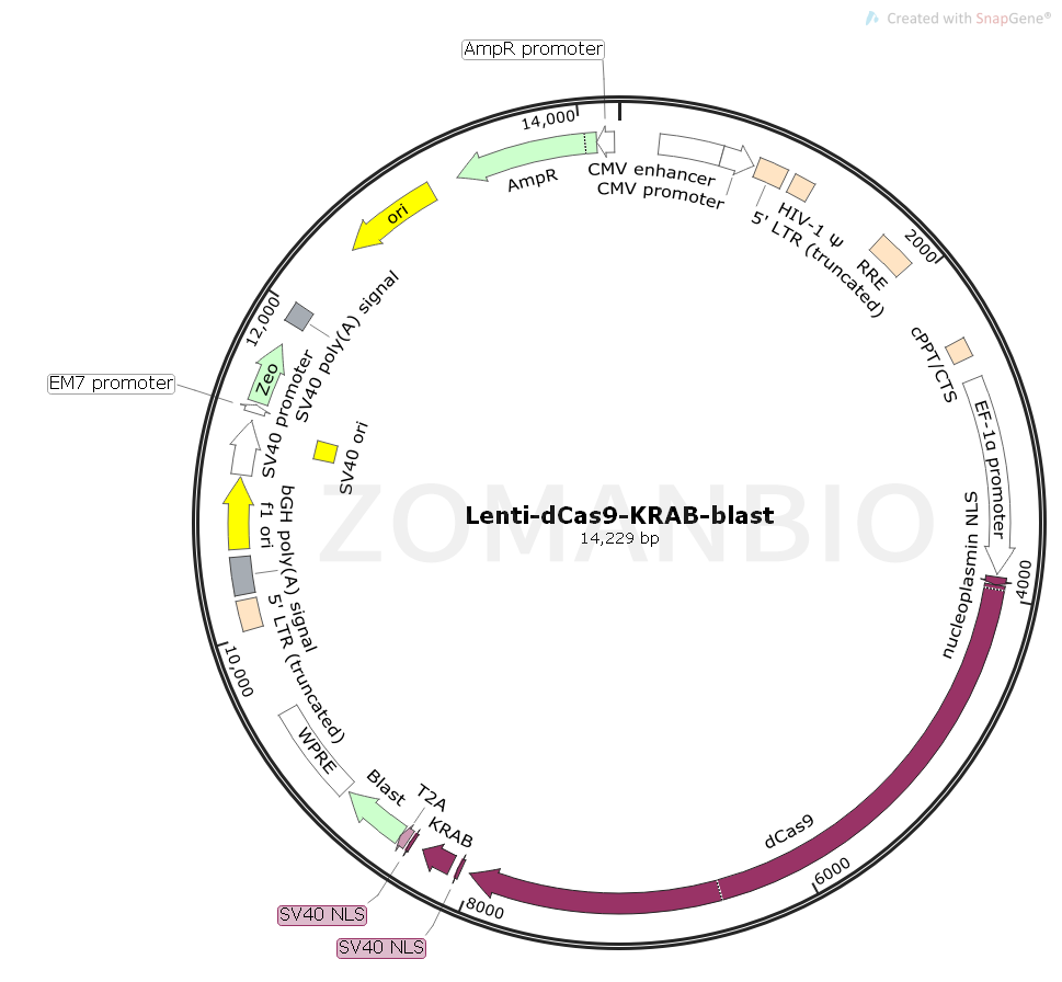 ZK1704 Lenti-dCas9-KRAB-blast哺乳編輯質(zhì)粒.txt