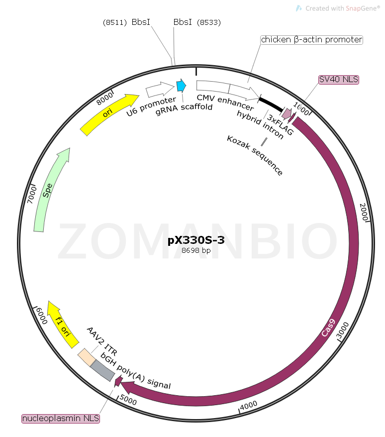 pX330S-3是一個哺乳細胞CAS9和gRNA表達質(zhì)粒。