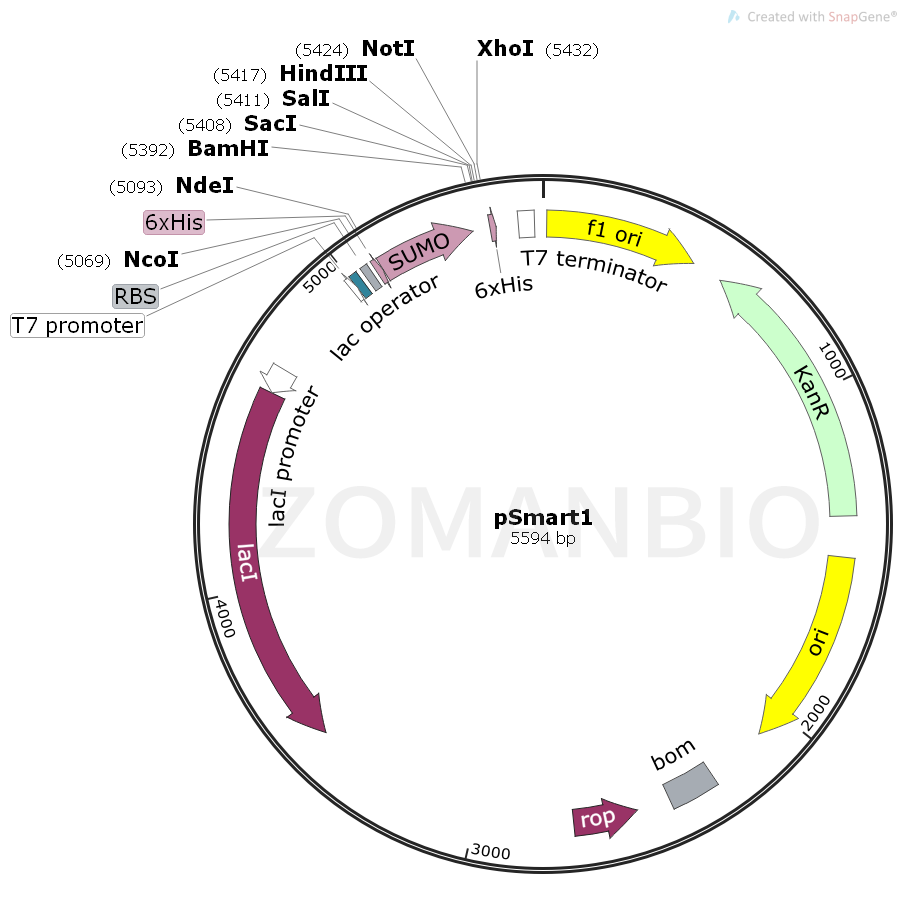 質(zhì)粒序列請(qǐng)下載:ZK1872 pSmart1大腸表達(dá)質(zhì)粒.txt