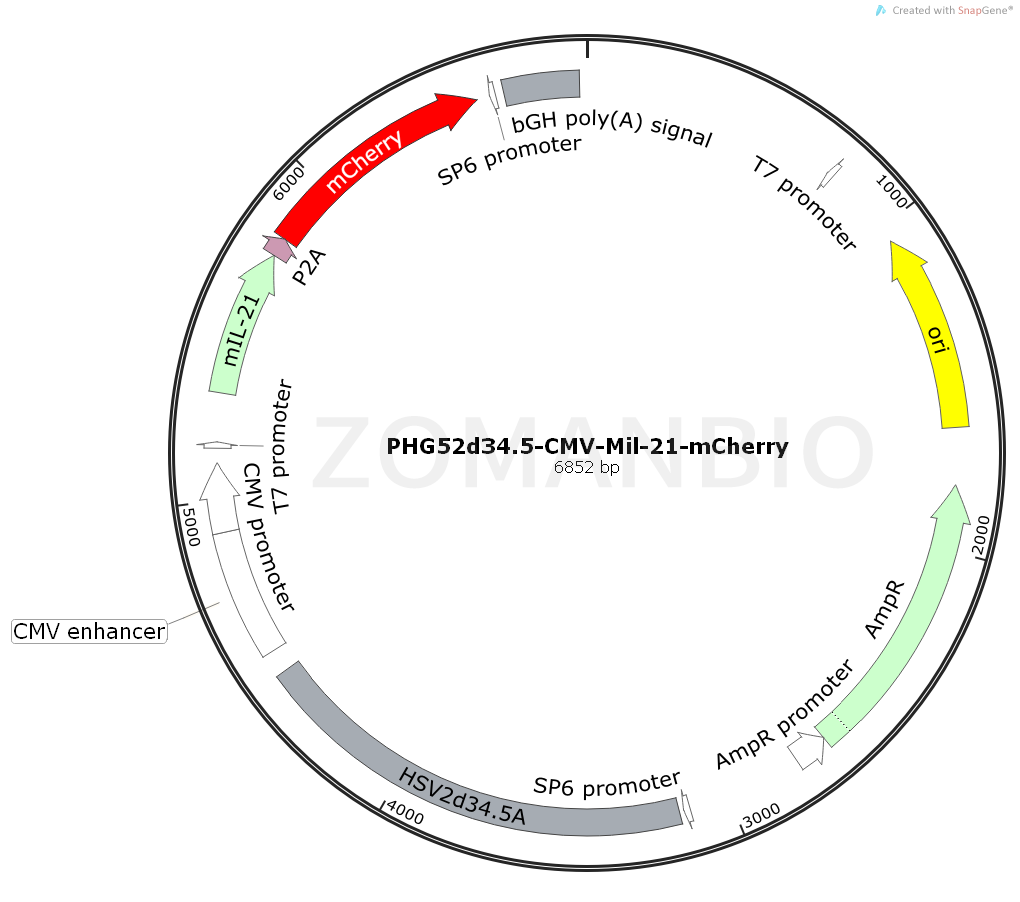 質粒序列請下載:ZK2044 PHG52d34.5-CMV-Mil-21-mCherry質粒.txt