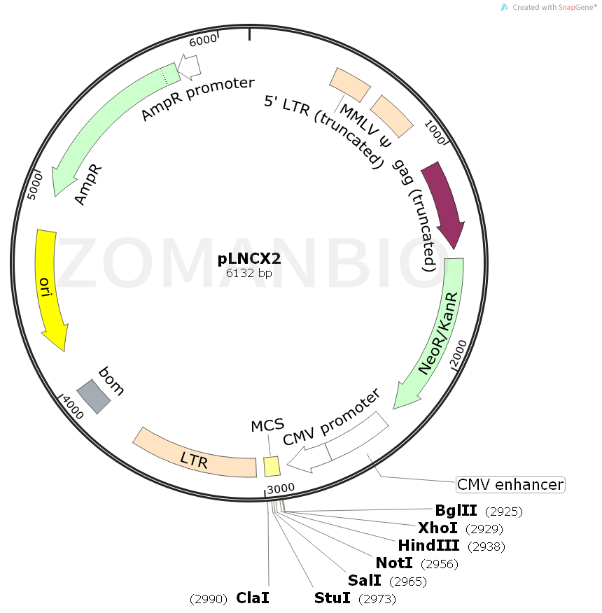 質(zhì)粒序列請下載:ZK2053 pLNCX2慢病毒表達質(zhì)粒.txt