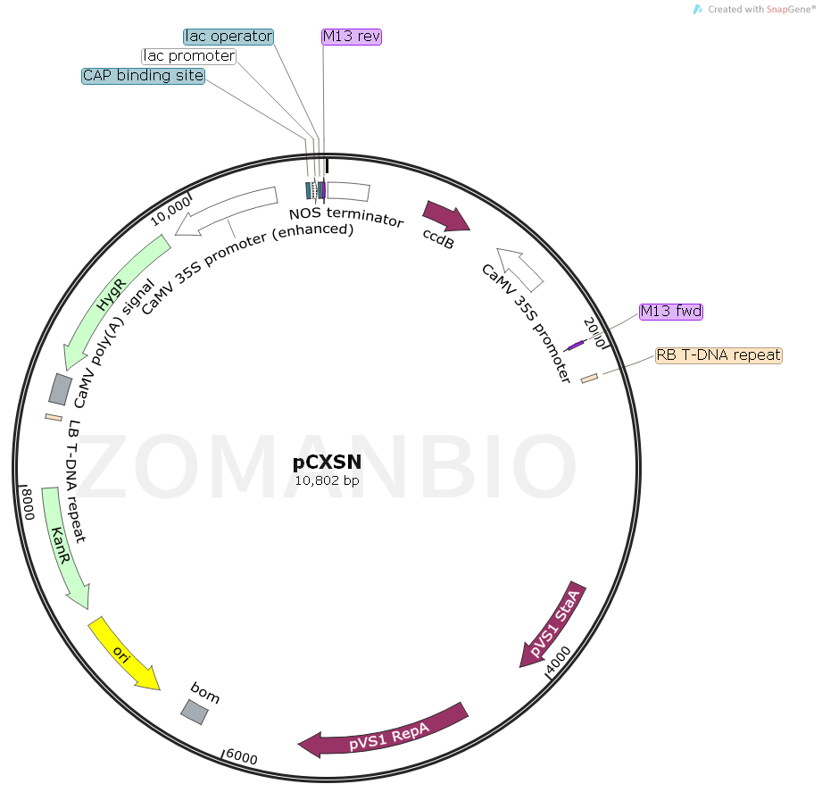 pCXSN質(zhì)粒是一個(gè)植物過表達(dá)載體,用Xcm I 酶切后變成T載體,連入基因后可直接轉(zhuǎn)化。其參考文獻(xiàn)是A versatile zero background T-vector system for gene cloning and functional genomics.