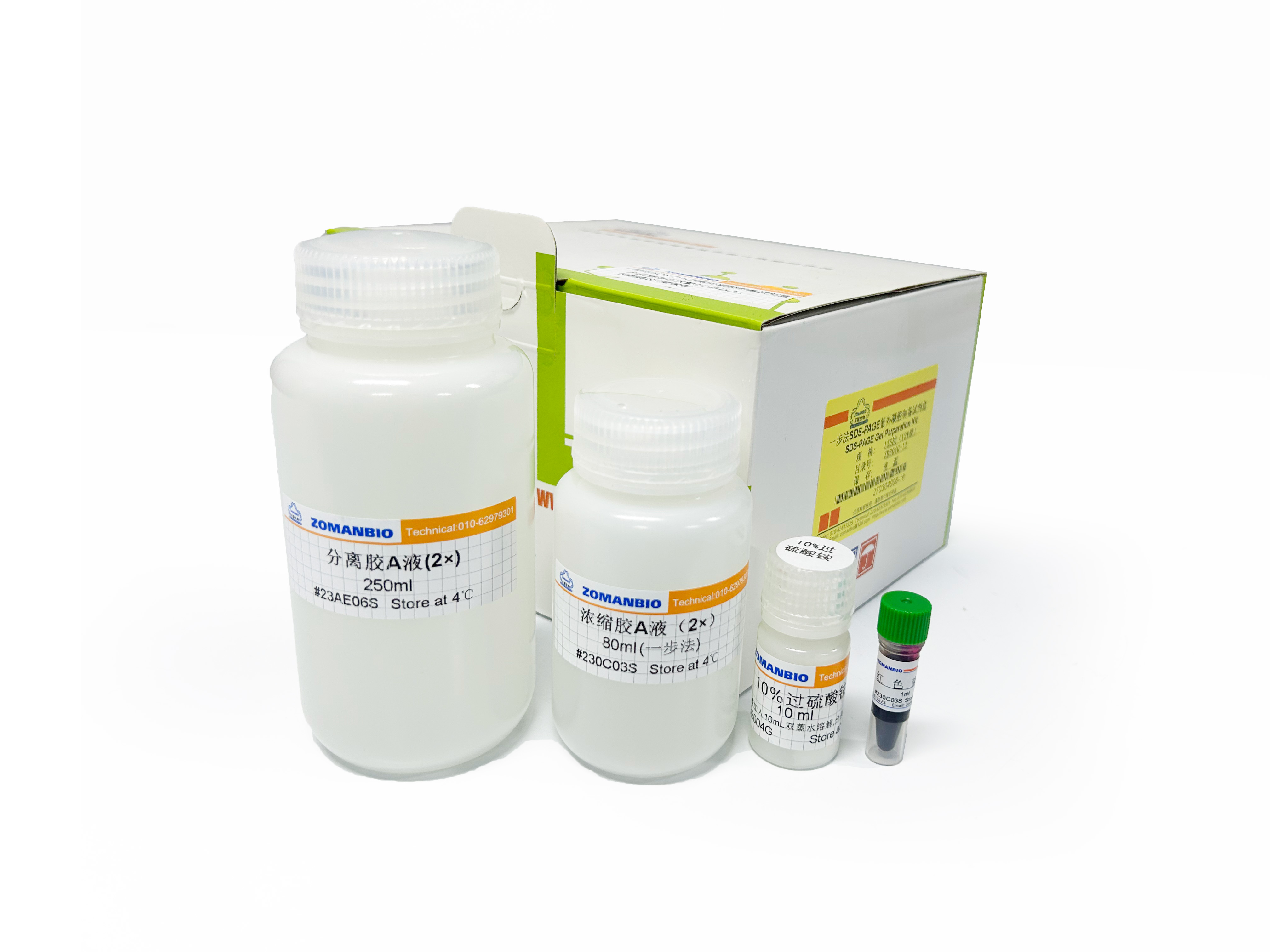 本產(chǎn)品為可紫外照射凝膠快速顯示蛋白條帶的一步法PAGE凝膠的預(yù)混配方。產(chǎn)品只需要1:1添加后,再加入催化劑---過硫酸銨,且支持一步灌膠,無需等待分離膠凝固再灌濃縮膠,此濃縮膠可以添加染料,使上樣孔更清晰,方便點樣。制備的凝膠與傳統(tǒng)Tris-甘氨酸電泳液完美兼容,且電泳方法一致。