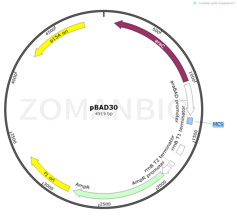 pBAD30是一個(gè)大腸桿菌pBAD系列表達(dá)質(zhì)粒。
