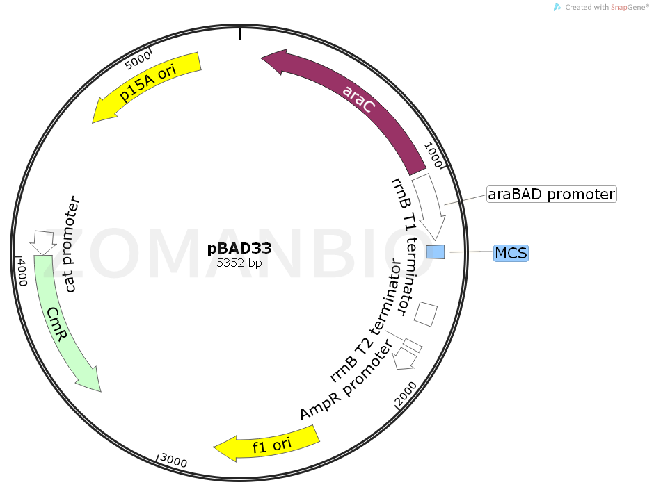pBAD33是一個(gè)大腸桿菌pBAD系列表達(dá)質(zhì)粒。