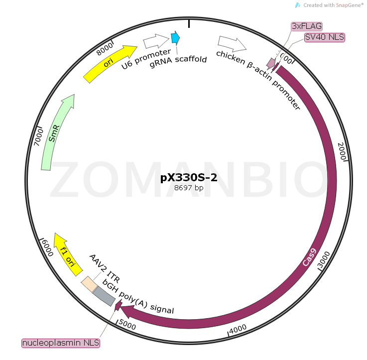 pX330S-2是一個(gè)哺乳細(xì)胞CAS9和gRNA表達(dá)質(zhì)粒。