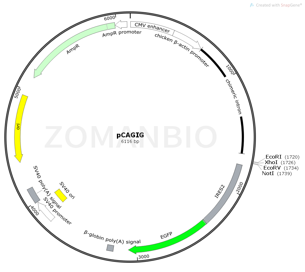 pCAGIG是一個哺乳細(xì)胞pCAG系列過表達質(zhì)粒。