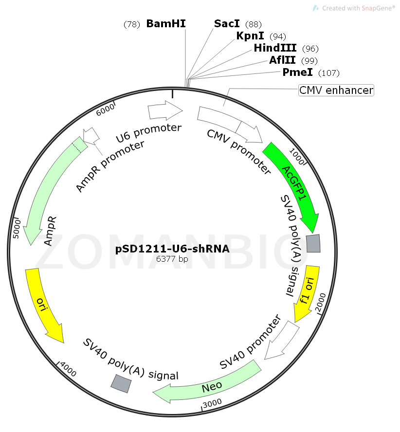 pSD1211-U6-shRNA哺乳干擾質(zhì)粒。