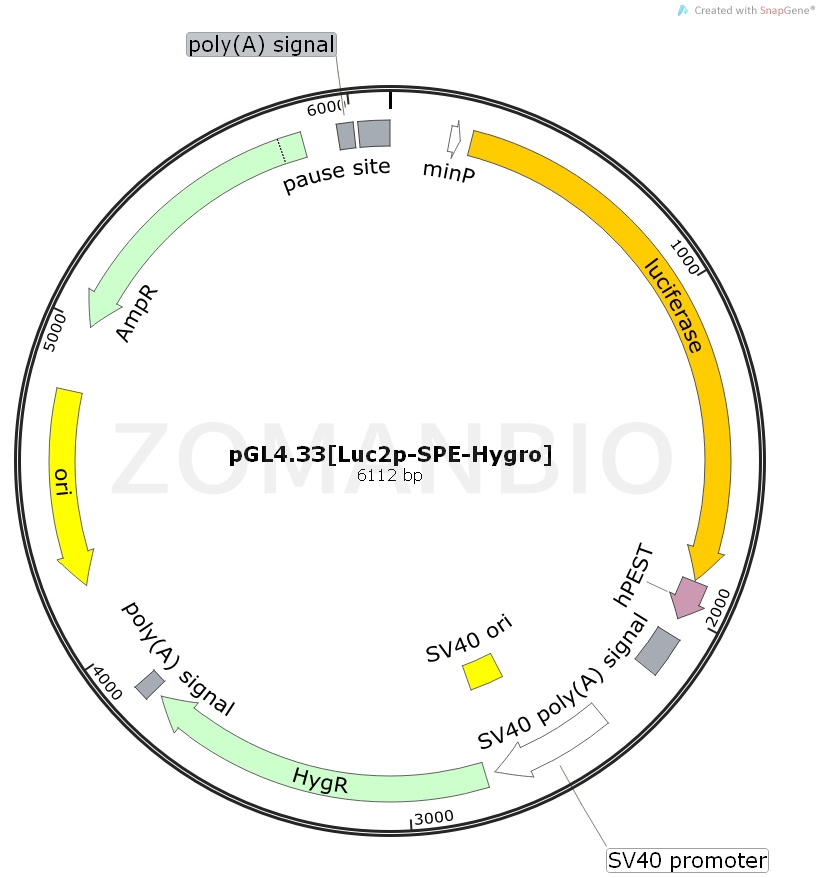 pGL4.33[Luc2p-SRE-Hygro]哺乳報告質(zhì)粒。
