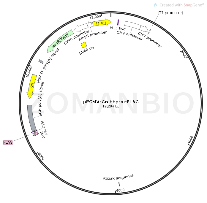 ZK6568 pECMV-Crebbp-m-FLAG小鼠基因質(zhì)粒.txt